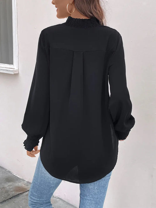 Collared Neck Half Button Long Sleeve Blouse
