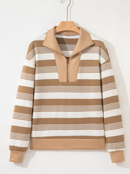Stripe Zip Collar Patchwork Vintage Sweatshirt