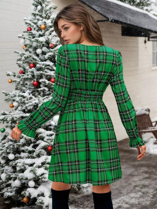 Floral Deep V Neck Smocked Bust Bubble Sleeve Babydoll Dress