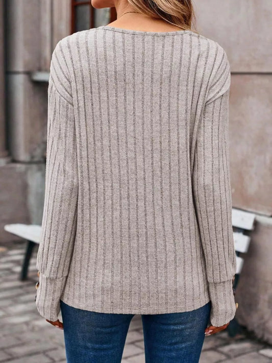 Basic Bae Full Size Ribbed V-Neck Long Sleeve T-Shirt